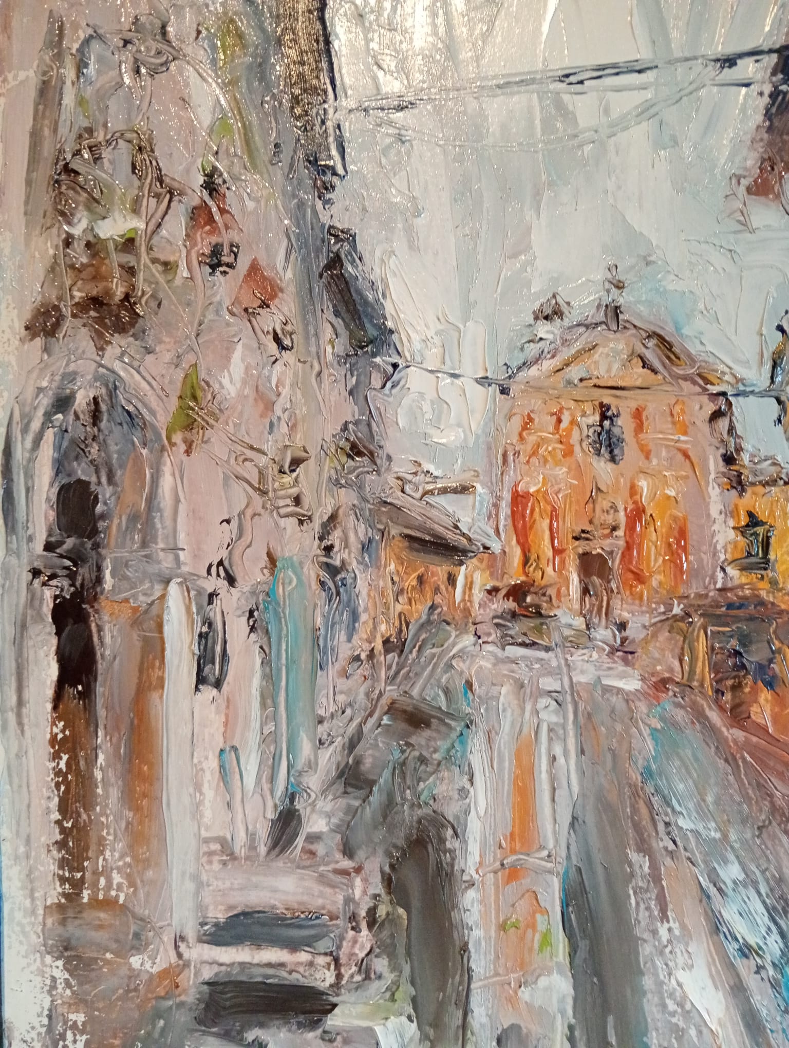 arrivo a Orta sotto la pioggia, olio a spatola (26x36)